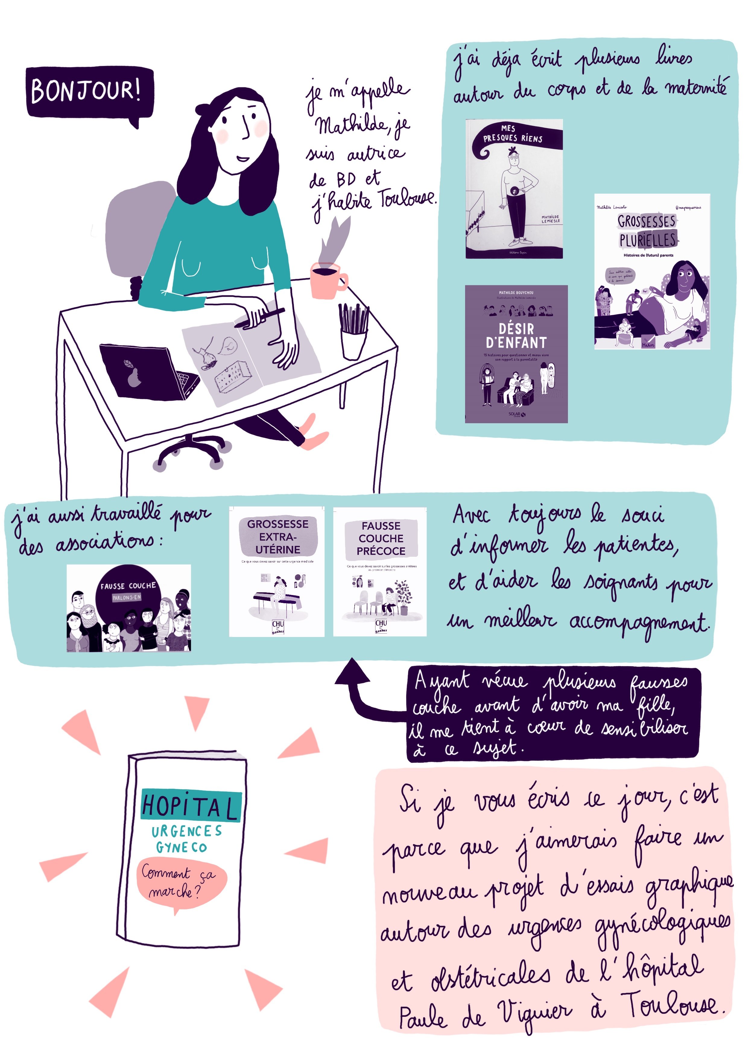 je suis autrice de bd, illustratrice. J’habite à Toulouse.