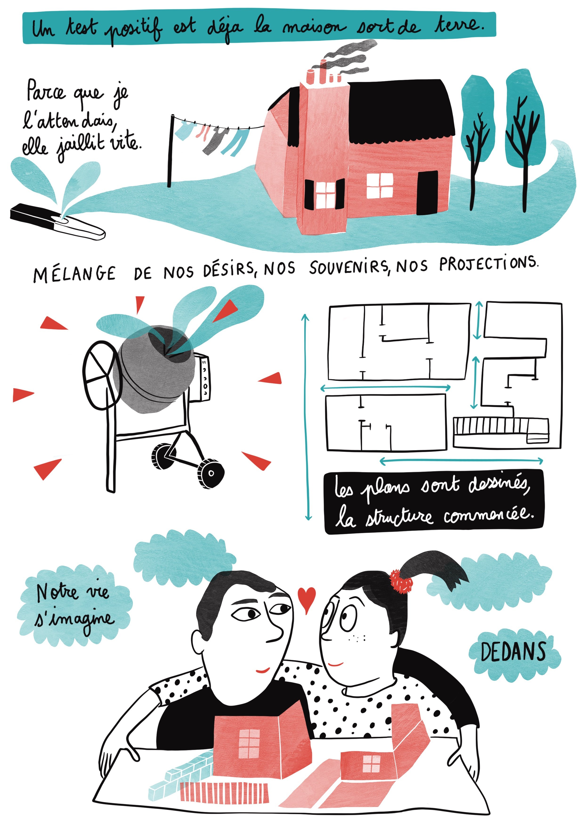 Où je me dis que dans notre tête, se construit dès un test positif un possible: ici, j'imagine qu'il est désiré, attendu. Il a donc toute sa place pour être, se développer. Parfois le possible est rapide, parfois lent. Parfois majestueux, parfois bancal. Que se passe t il quand sa construction vacille? S’écroule? Une petite ruine. Un espace vide.