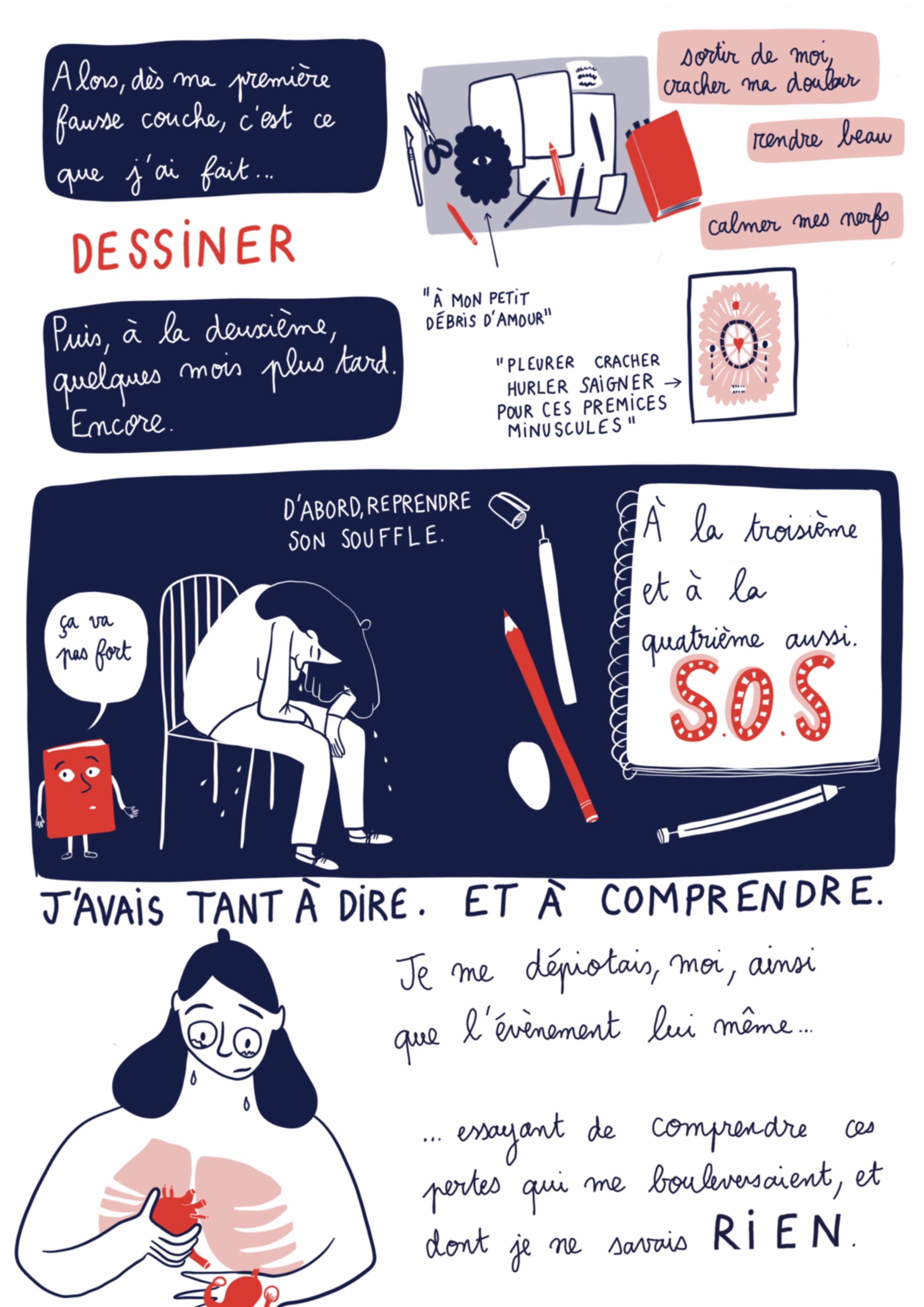 Ou je vous fais découvrir un extrait de ce sur quoi je travaille depuis plus d’un an. Une bande dessiné enquête, ou je me questionne sur la fausse couche, d’un point de vue historique, sociale, politique et féministe. Comme un gros condensé des réflexions que j’ai déjà entamé sur @mespresquesriens. voici ici les premières pages.