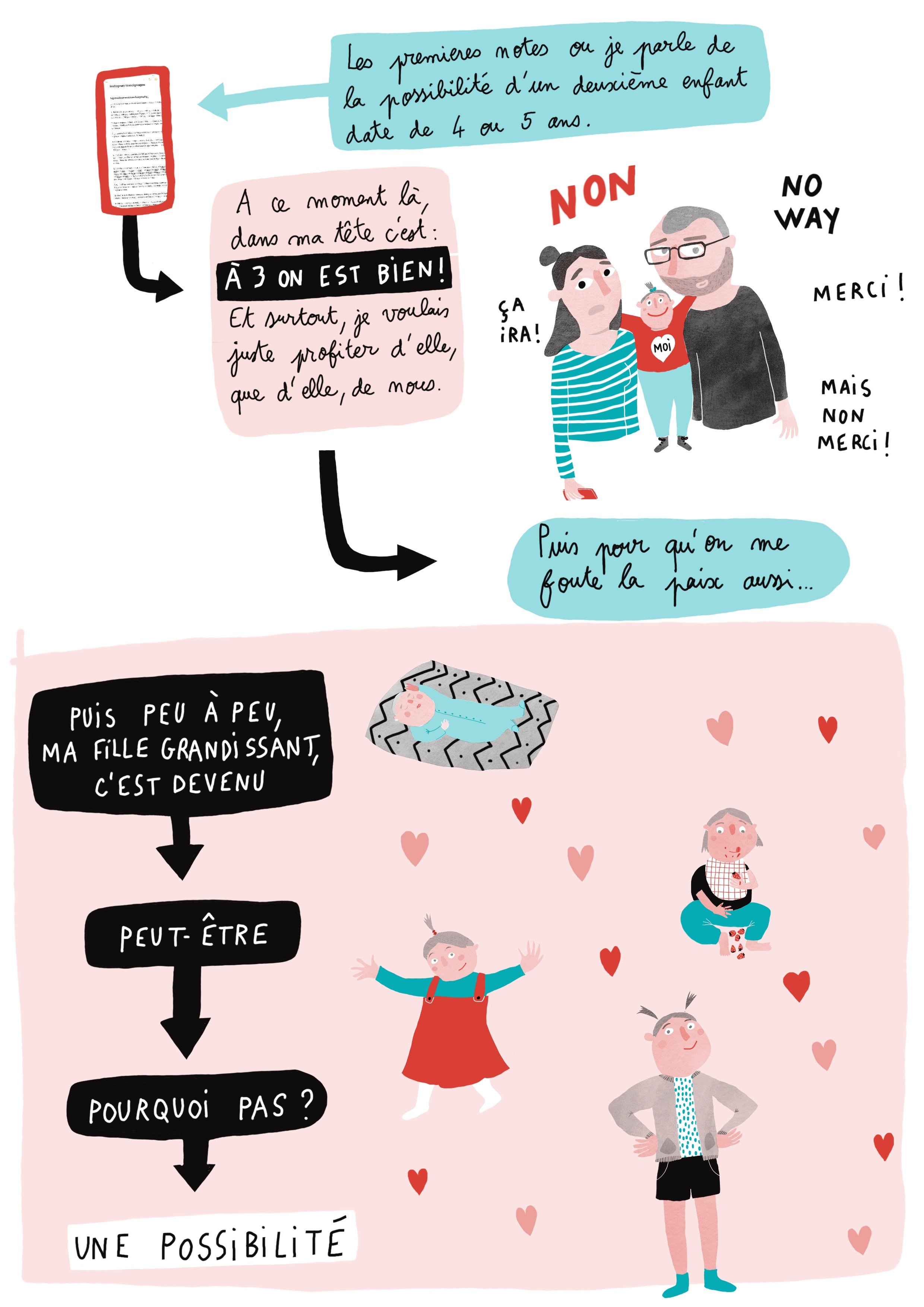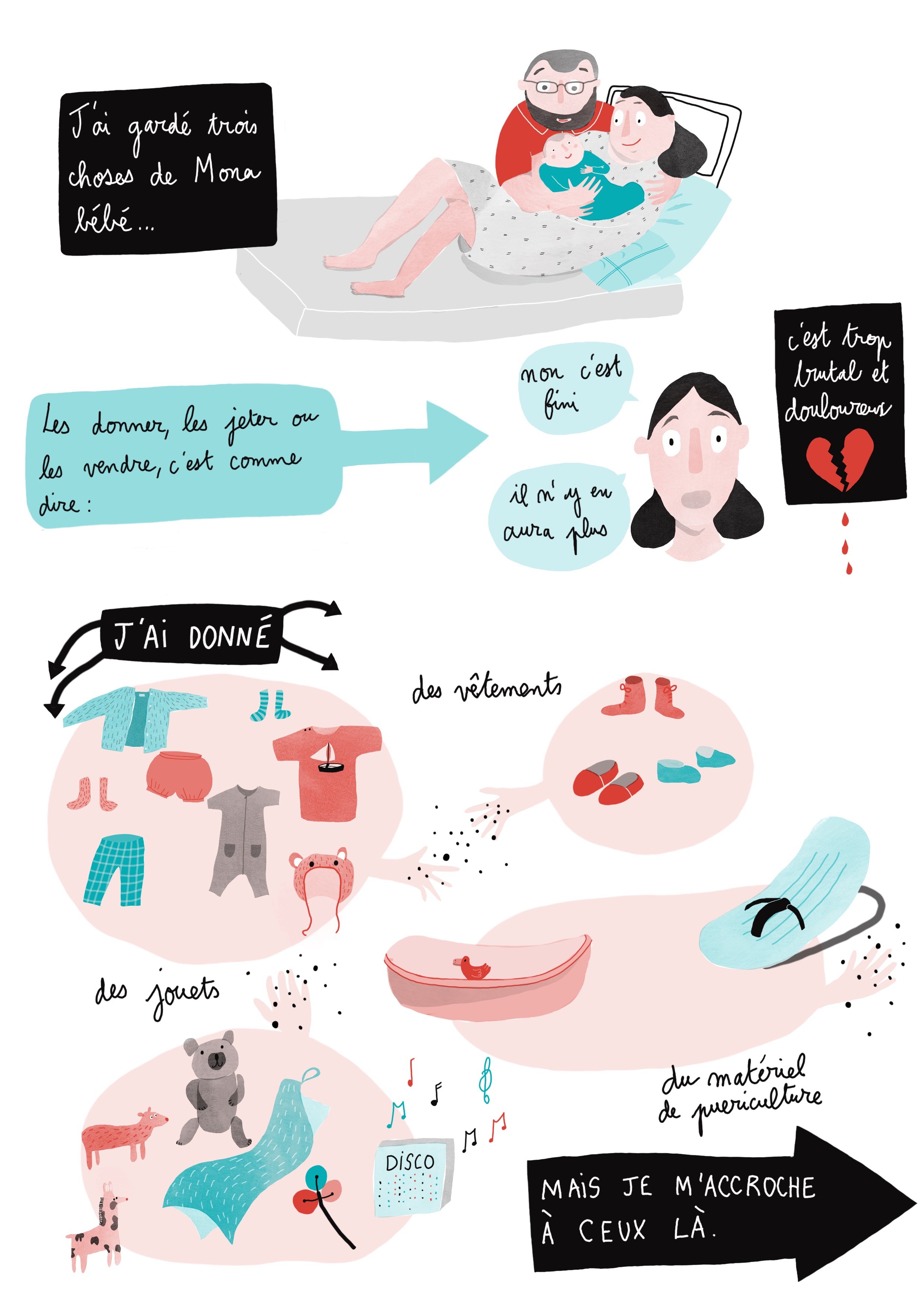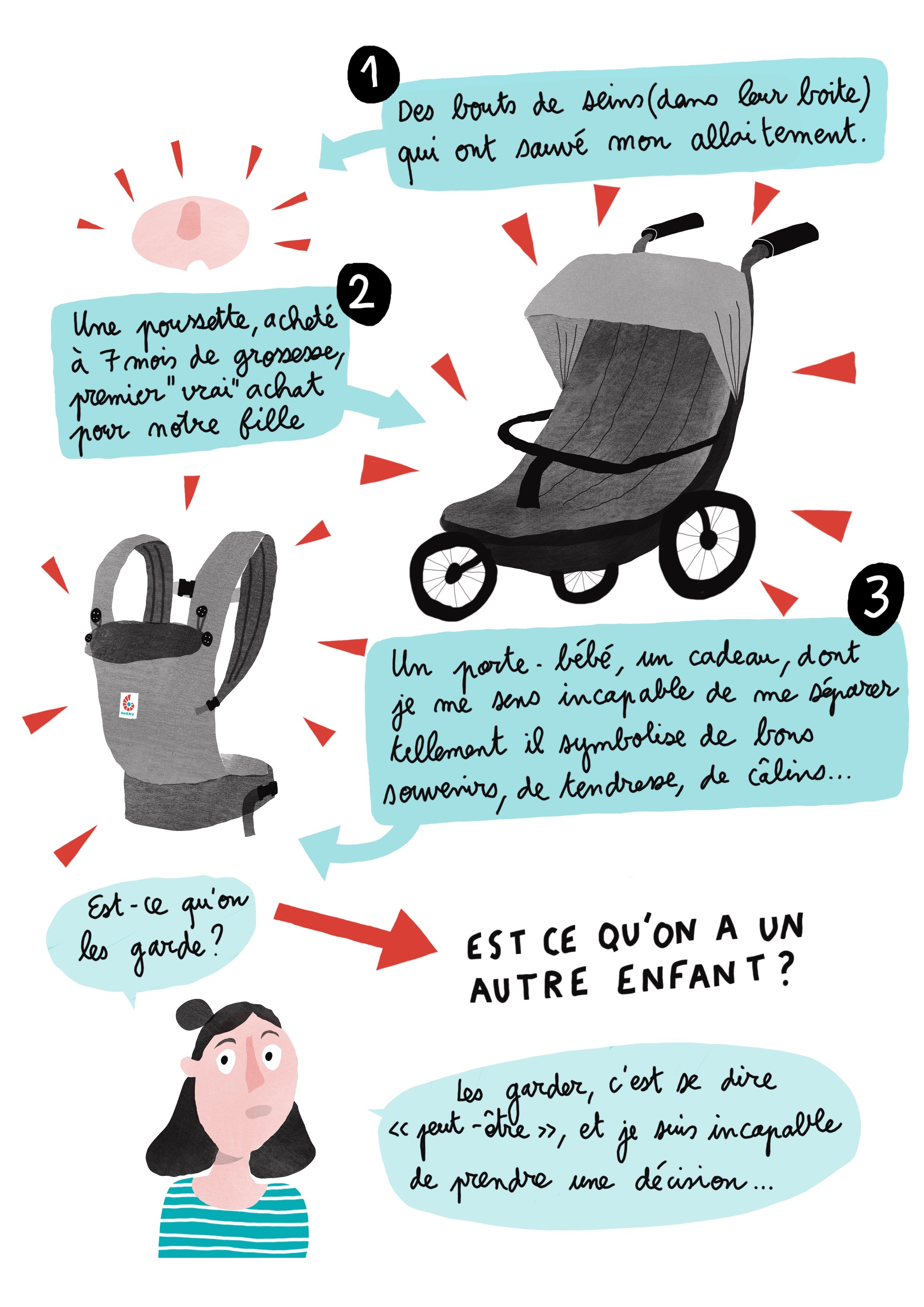 Ou je me demande ce que je vais faire de ces objets de bébé M que j’ai gardé. Est ce que je les donne? Est ce que je les garde? Tout ca me fait poser LA question: un deuxième, ou pas? Je suis encore partagée, je balance avec mon coeur. On verra.