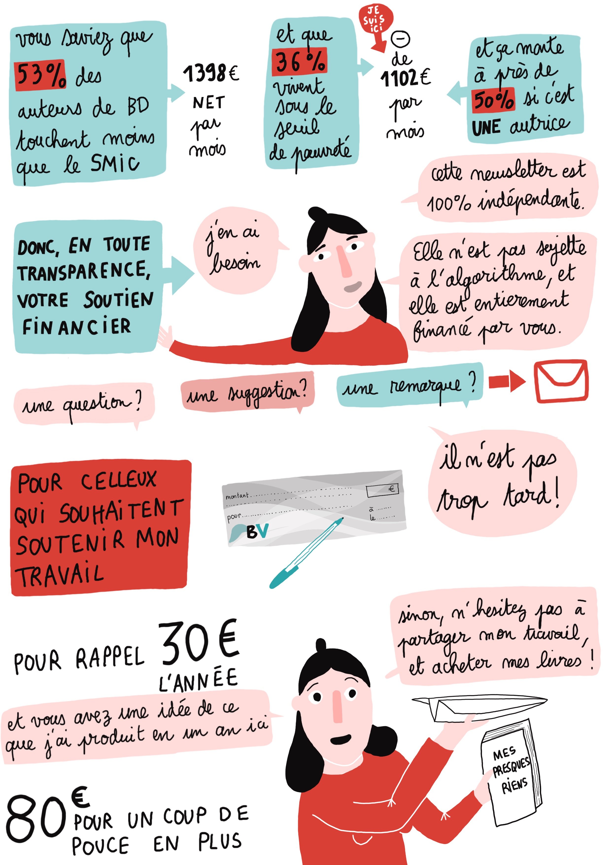 Votre soutien financier me rend plus sereine, plus concentrée sur mes histoires, mes dessins, ce que je veux vous transmettre…